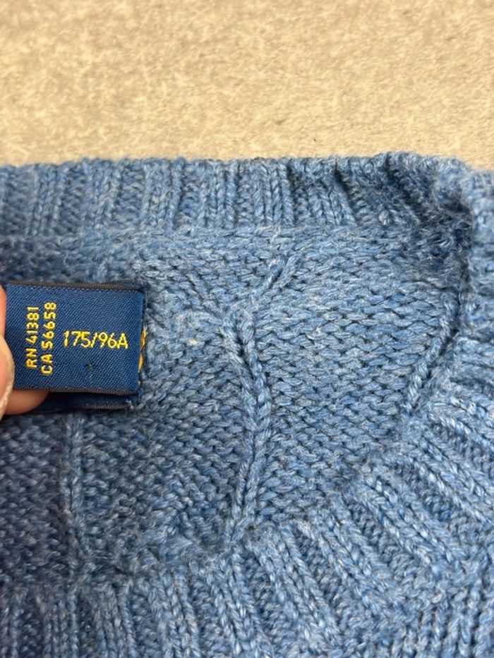 Pull d’hiver torsadé en maille Ralph Lauren bleu col rond taille M - photo numéro 12