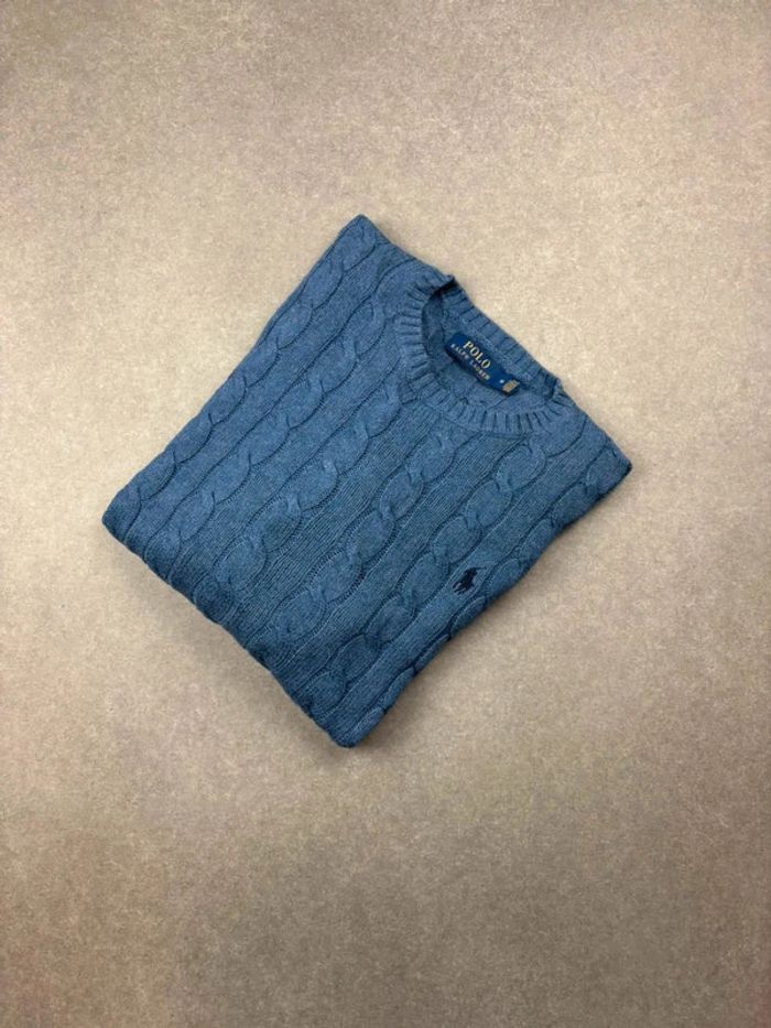 Pull d’hiver torsadé en maille Ralph Lauren bleu col rond taille M - photo numéro 1