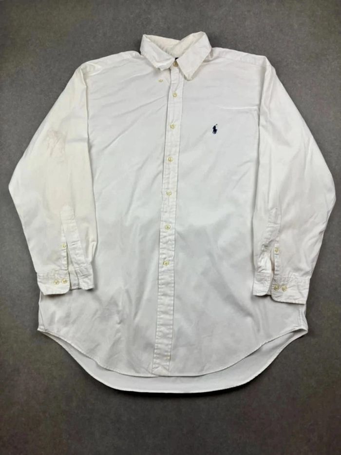 Chemise shirt Ralph Lauren blanche uni logo noir old money taille L - photo numéro 1