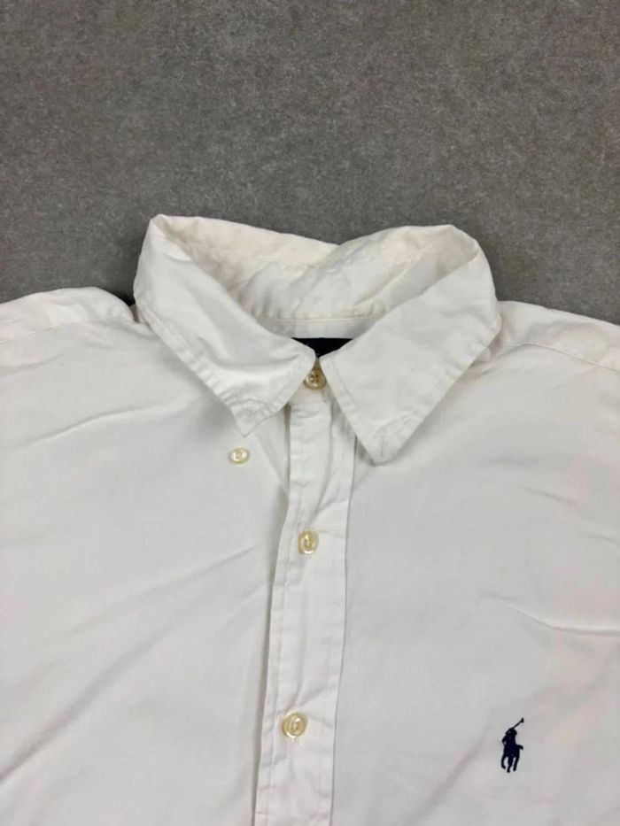Chemise shirt Ralph Lauren blanche uni logo noir old money taille L - photo numéro 16