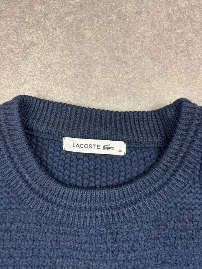 Pull à motif Lacoste bleu logo en bas col rond épais taille S - photo numéro 9