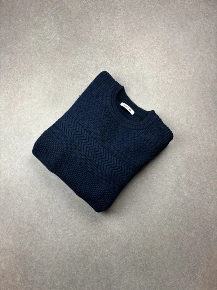 Pull à motif Lacoste bleu logo en bas col rond épais taille S - photo numéro 7