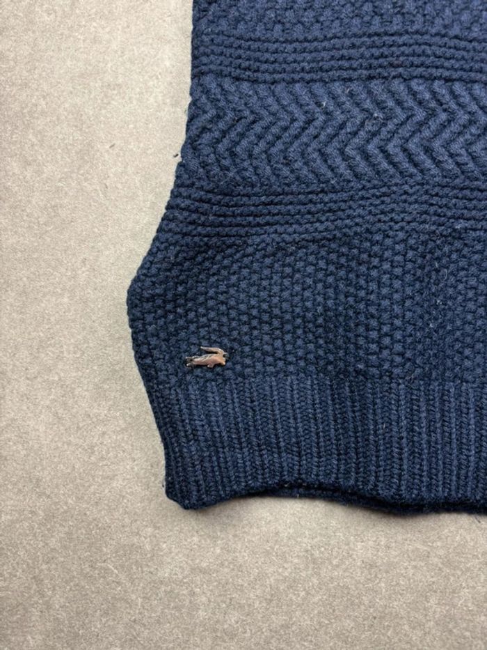 Pull à motif Lacoste bleu logo en bas col rond épais taille S - photo numéro 6