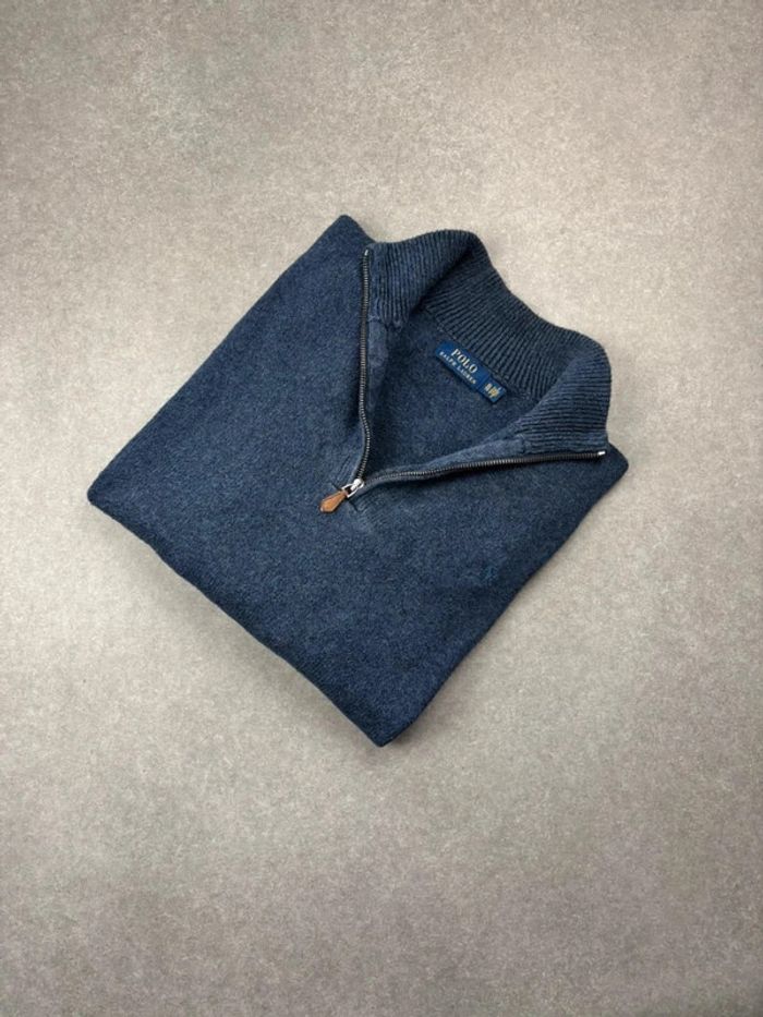 Pull half zip 1/4 zip Ralph Lauren bleu col camionneur taille M - photo numéro 1