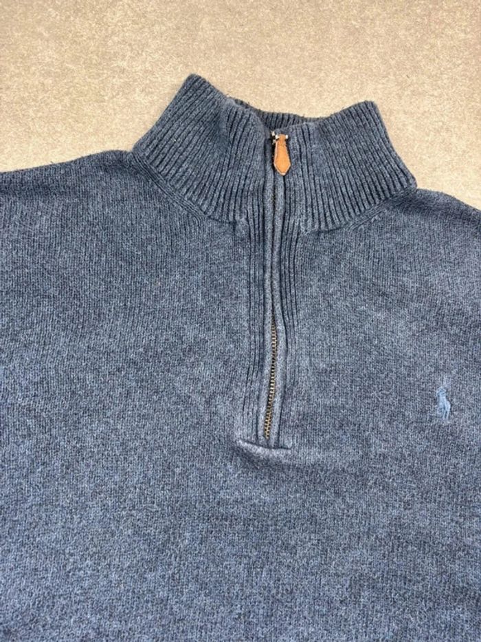 Pull half zip 1/4 zip Ralph Lauren bleu col camionneur taille M - photo numéro 14