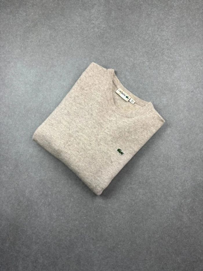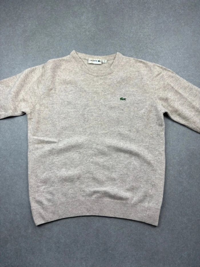 Pull Lacoste crème beige en laine col rond devanlay old money taille S - photo numéro 1