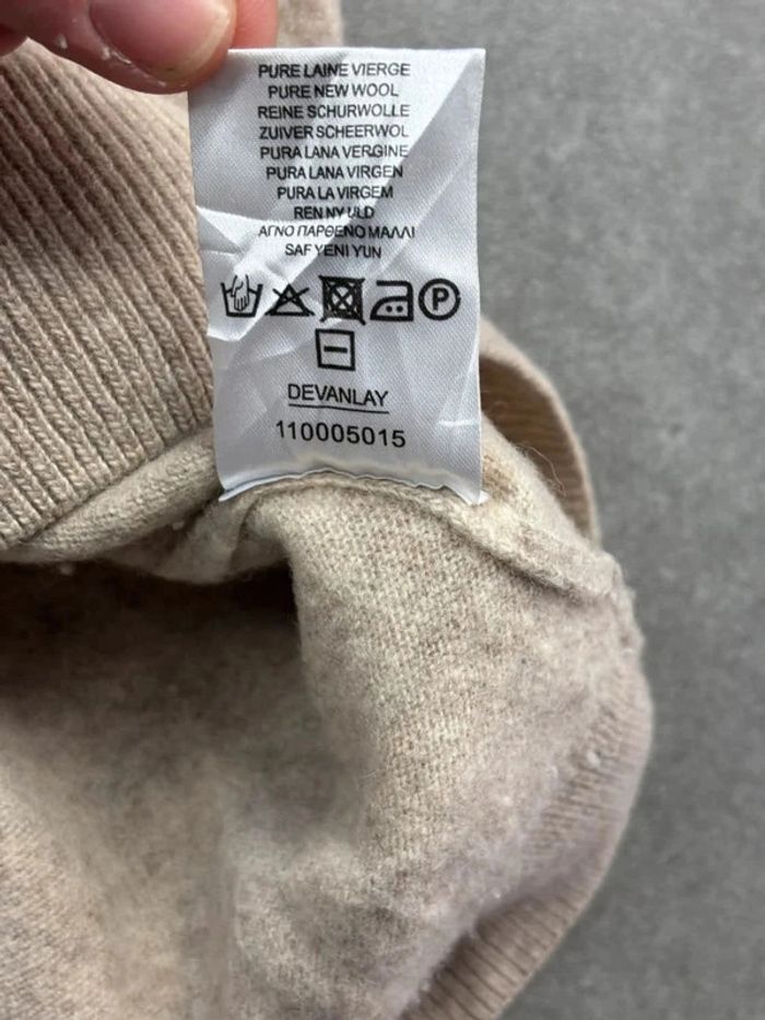 Pull Lacoste crème beige en laine col rond devanlay old money taille S - photo numéro 8