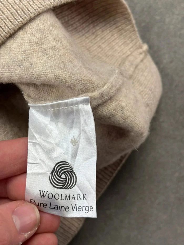 Pull Lacoste crème beige en laine col rond devanlay old money taille S - photo numéro 9