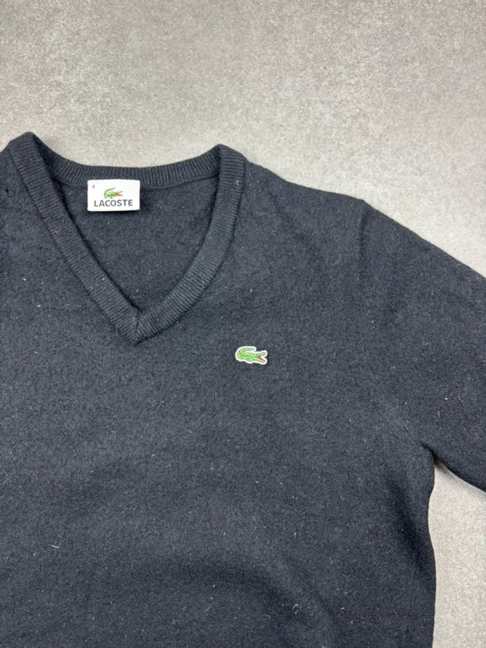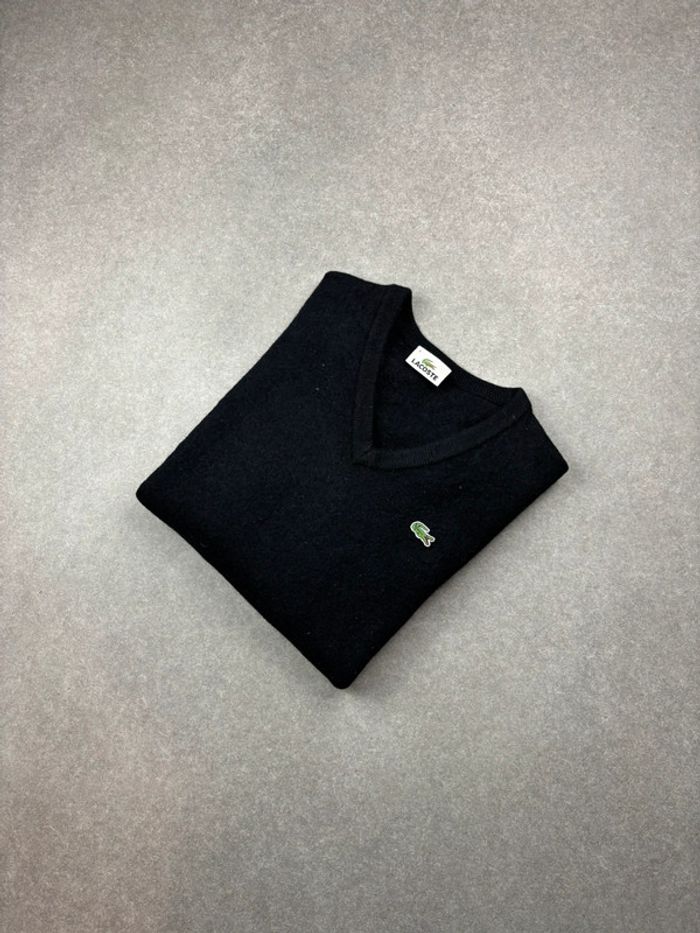 Pull d’hiver en laine noir Lacoste col V taille M - photo numéro 1