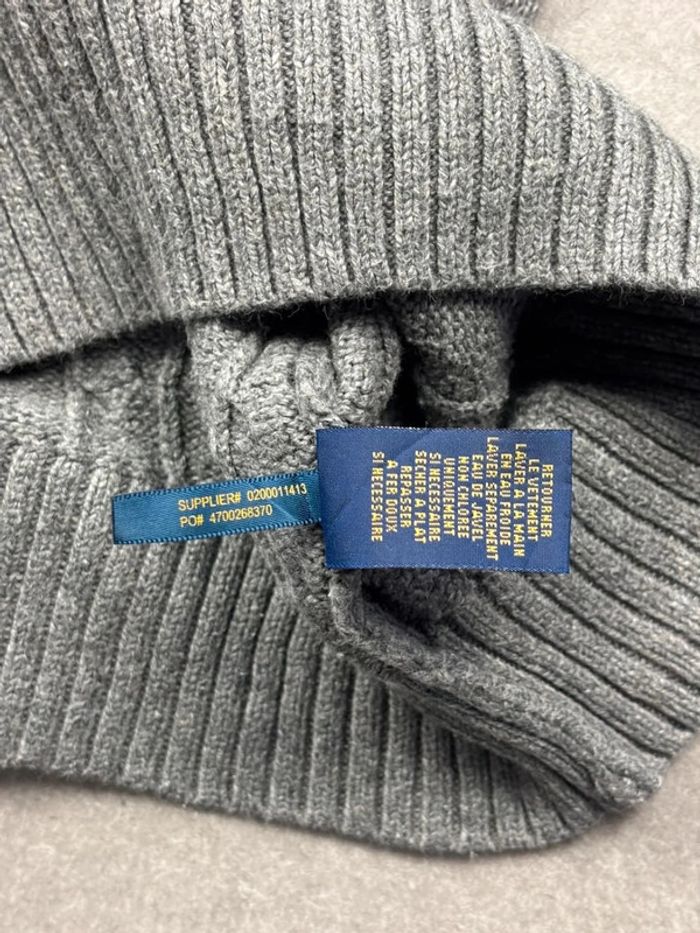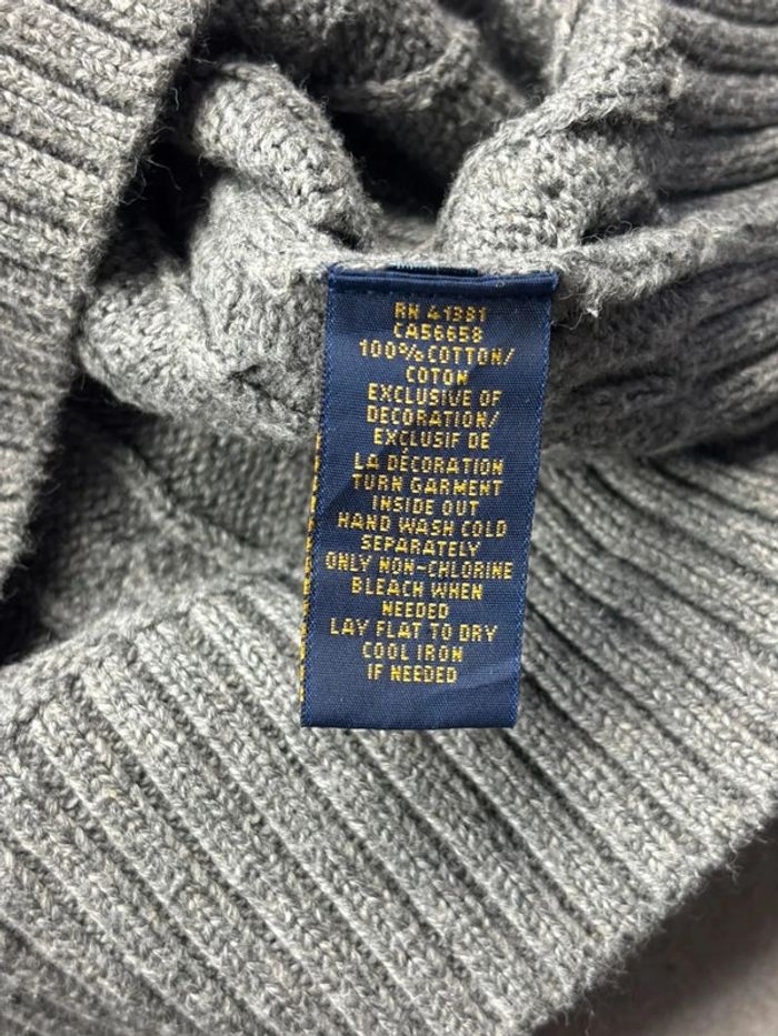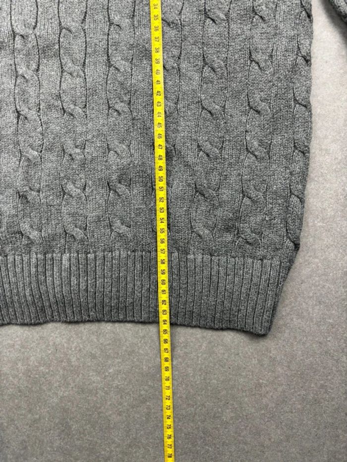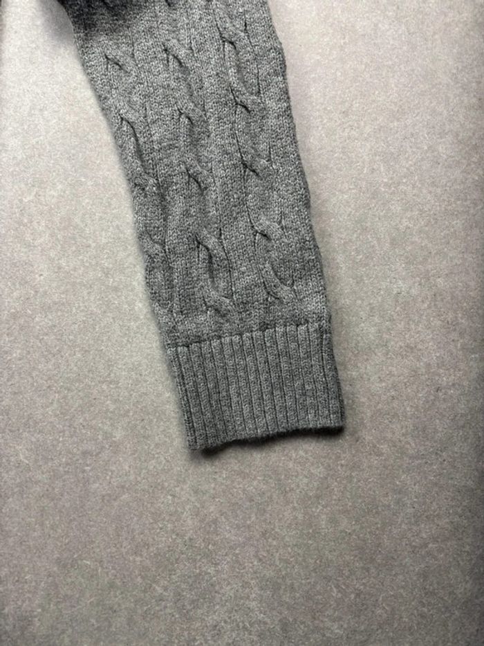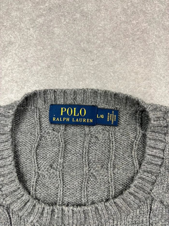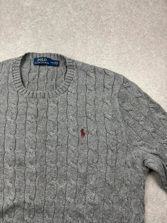 Pull d’hiver torsadé en maille Ralph Lauren gris logo rouge col rond taille L - photo numéro 11