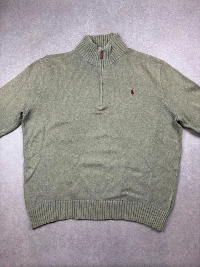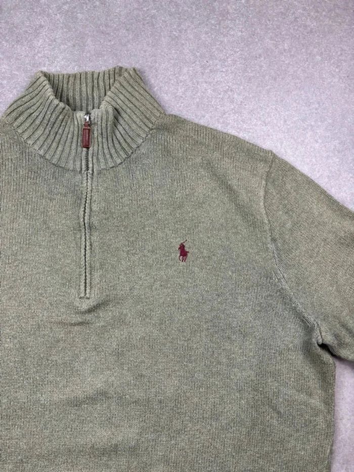 Pull d’hiver Ralph Lauren 1/4 zip semi zip half zip col camionneur vert logo rouge taille XL - photo numéro 10