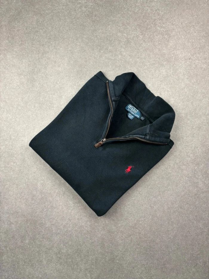 Pull d’hiver 1/4 zip half zip Ralph Lauren noir logo rouge semi zip taille S homme - photo numéro 1