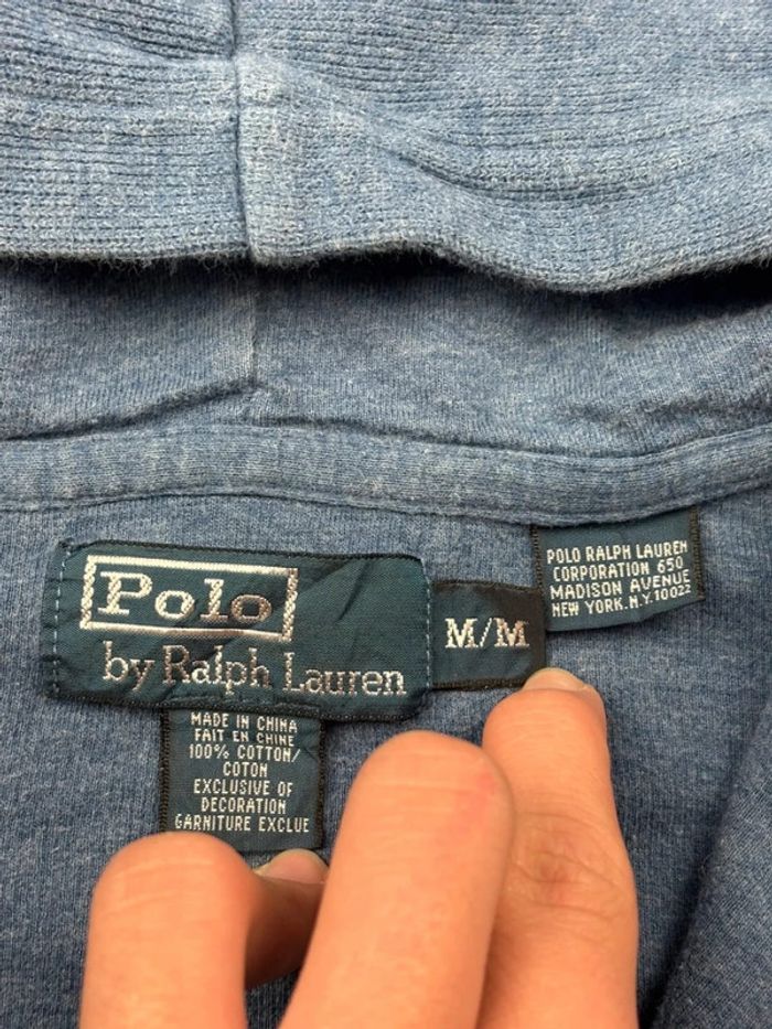 Gilet à zip Ralph Lauren à capuche bleu clair logo rouge taille M - photo numéro 10