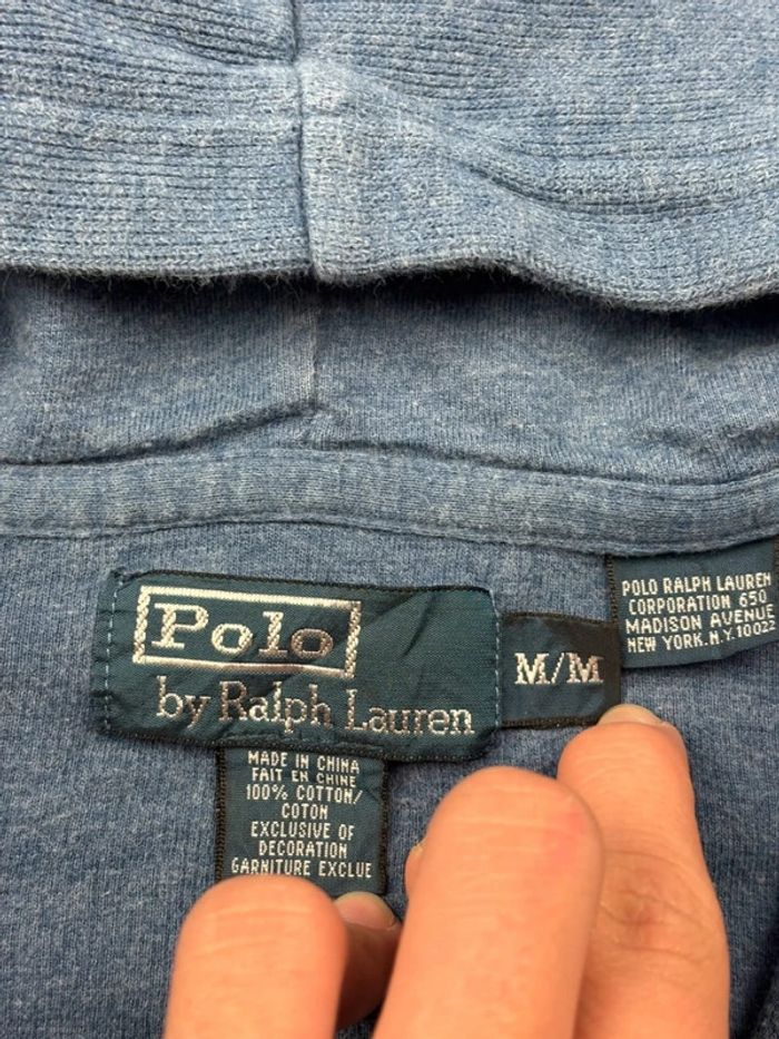 Gilet à zip Ralph Lauren à capuche bleu clair logo rouge taille M - photo numéro 11