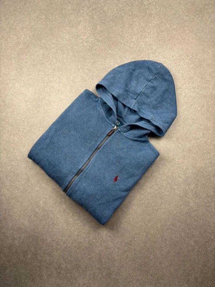 Gilet à zip Ralph Lauren à capuche bleu clair logo rouge taille M - photo numéro 1