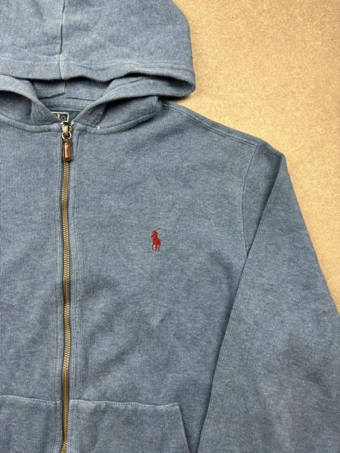 Gilet à zip Ralph Lauren à capuche bleu clair logo rouge taille M - photo numéro 7