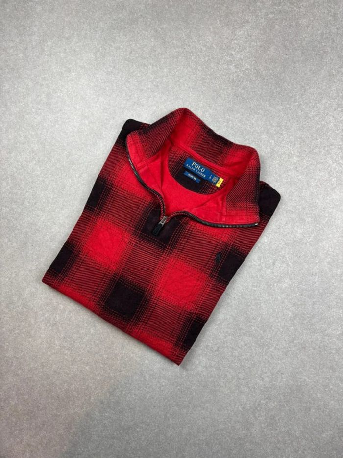 Pull half zip 1/4 zip Ralph Lauren rouge et noir estate rib taille L - photo numéro 1