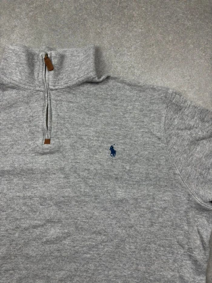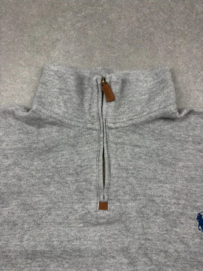 Pull d’hiver half zip 1/4 zip Ralph Lauren gris logo bleu marine taille XL - photo numéro 5