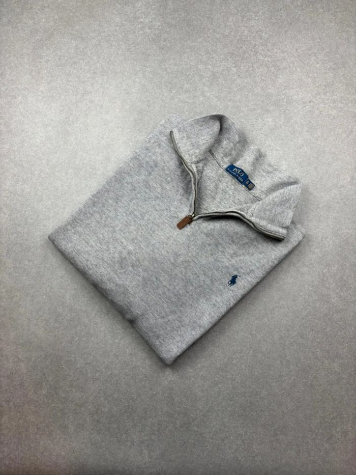 Pull d’hiver half zip 1/4 zip Ralph Lauren gris logo bleu marine taille XL - photo numéro 1
