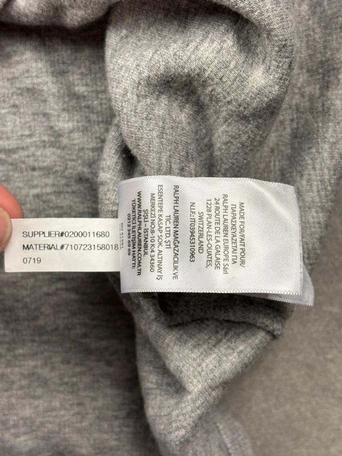 Pull d’hiver half zip 1/4 zip Ralph Lauren gris logo bleu marine taille XL - photo numéro 13