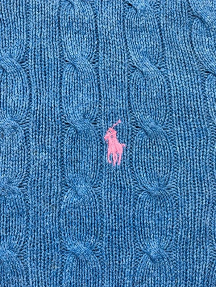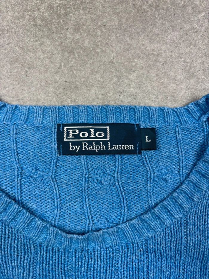 Pull d’hiver torsadé en maille Ralph Lauren bleu col rond taille L - photo numéro 8