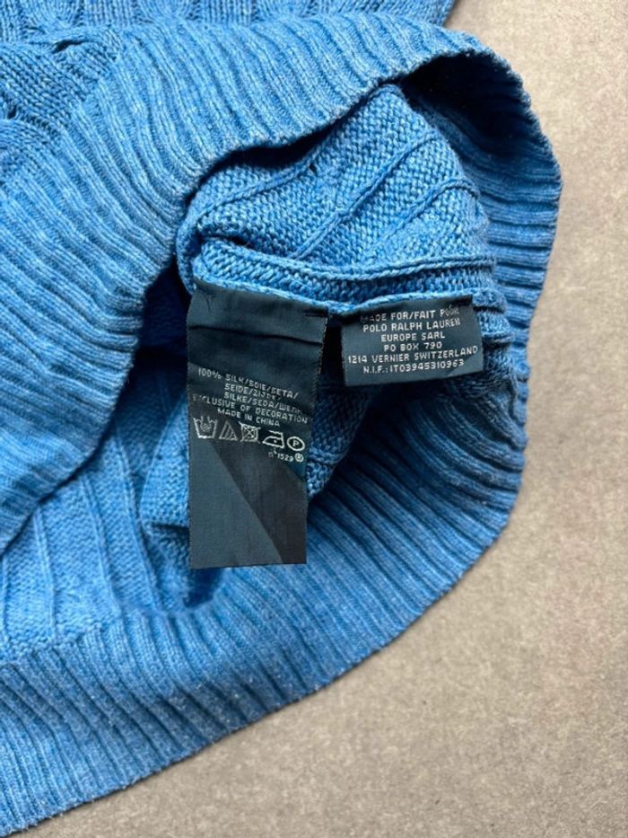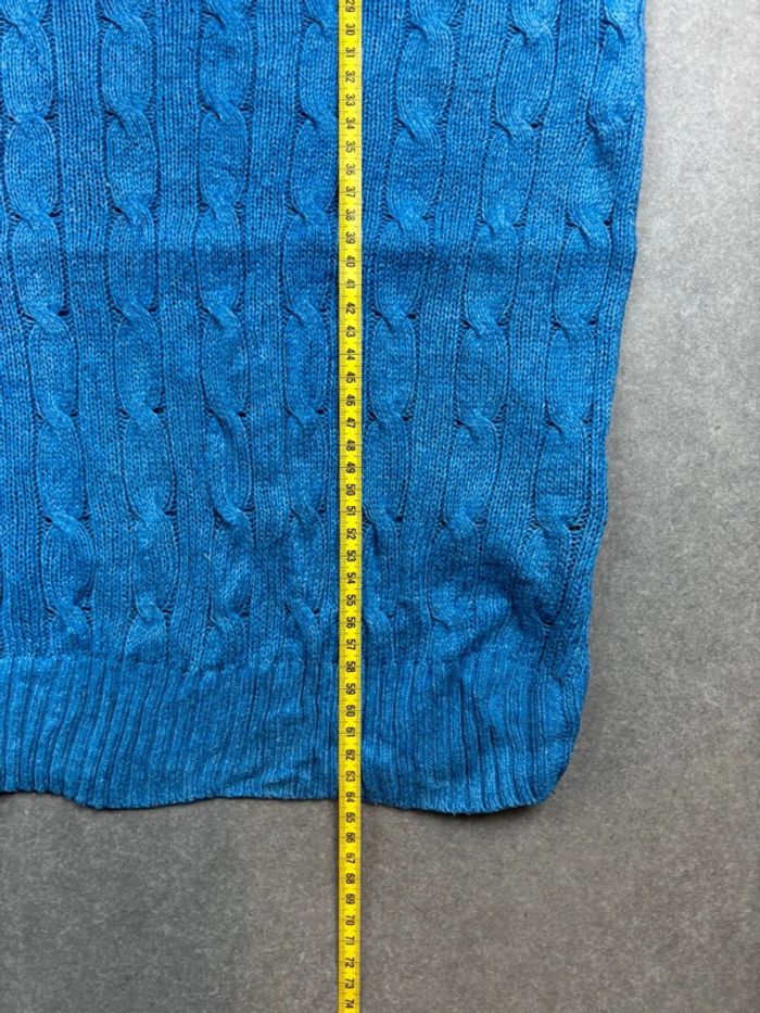 Pull d’hiver torsadé en maille Ralph Lauren bleu col rond taille L - photo numéro 11