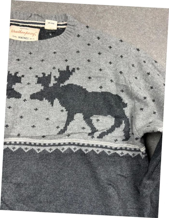 Pull vintage Noël à motif ethnic gris - photo numéro 1