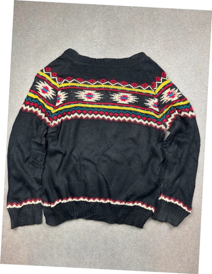 Pull vintage Noël à motif ethnic coogi style noir - photo numéro 2