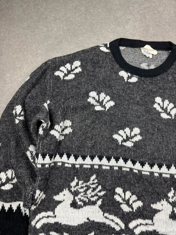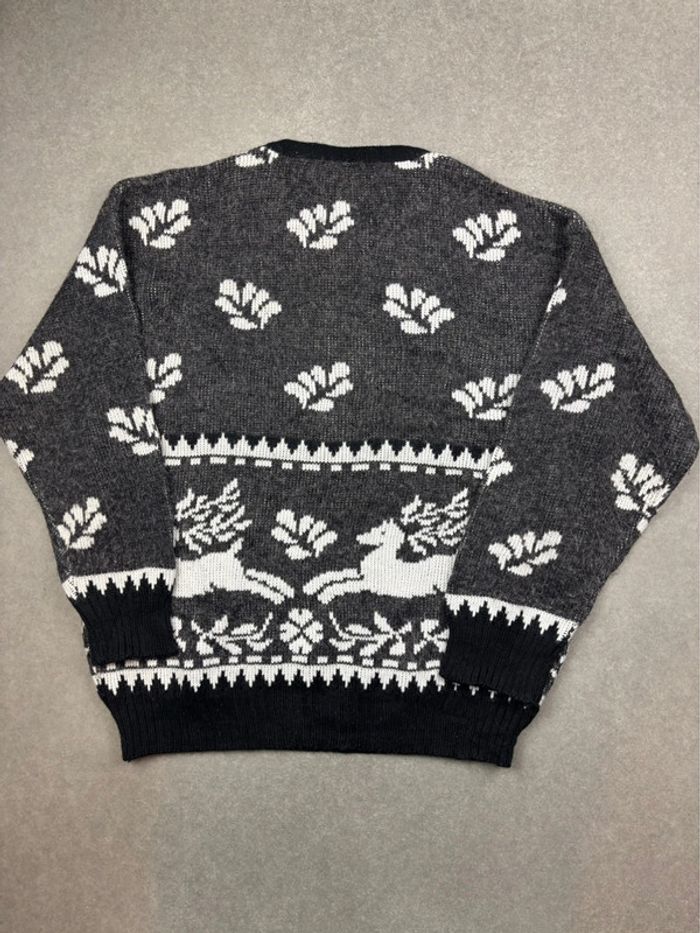 Pull vintage Noël à motif ethnic gris et noir - photo numéro 2