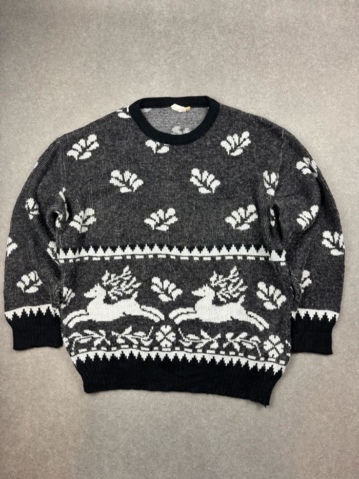 Pull vintage Noël à motif ethnic gris et noir - photo numéro 1