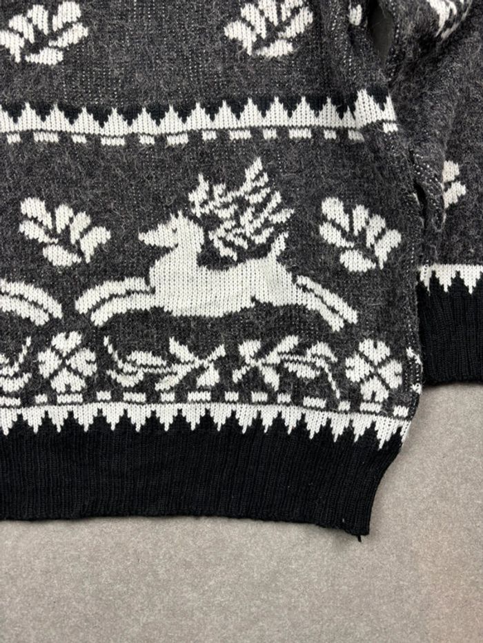 Pull vintage Noël à motif ethnic gris et noir - photo numéro 5