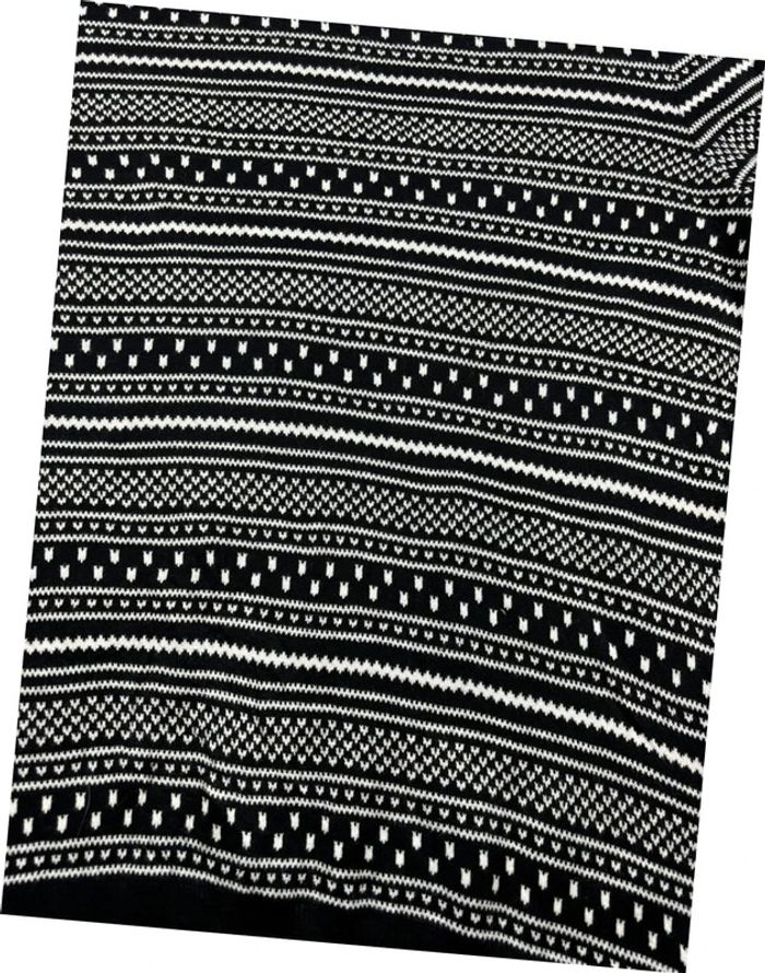 Pull vintage coogi style à motif blanc et noir rayure - photo numéro 1