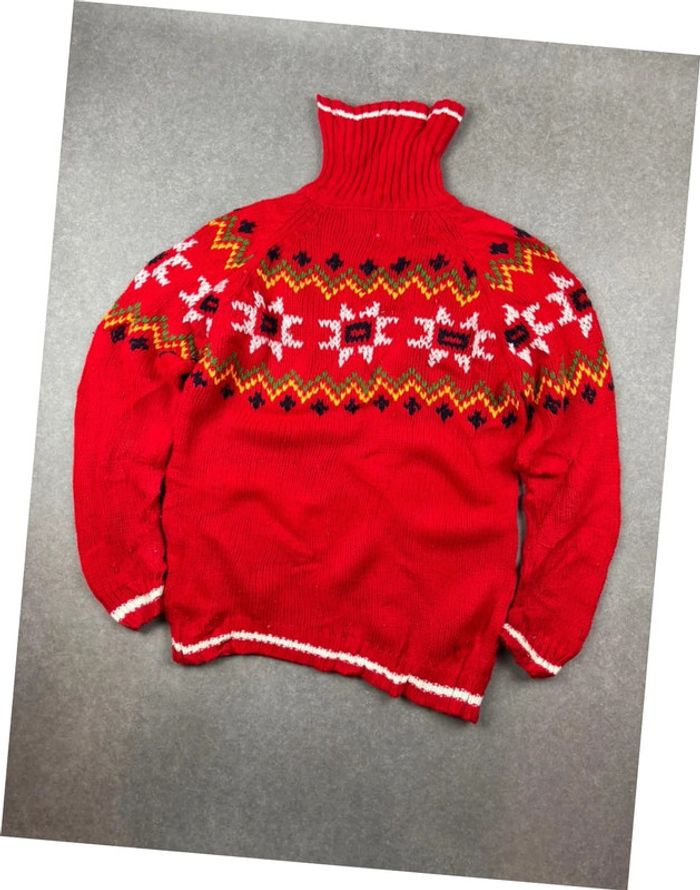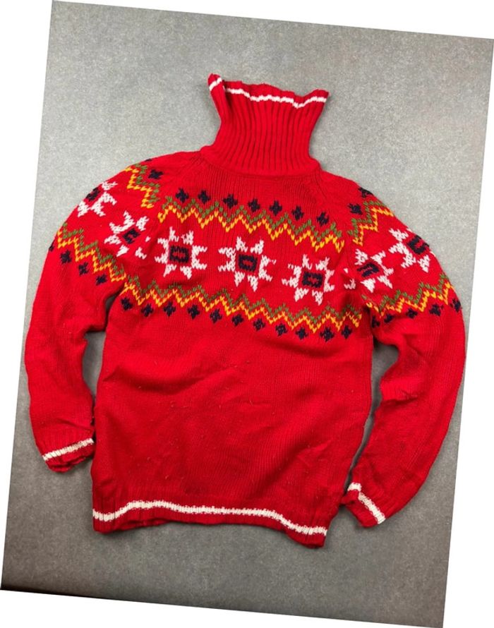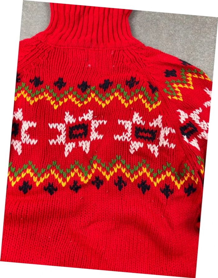 Pull vintage coogi style Noël à motif rouge à col roulé - photo numéro 1