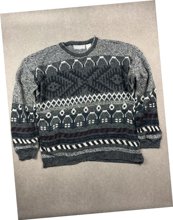 Pull vintage coogi style à motif gris et noir Noël - photo numéro 1