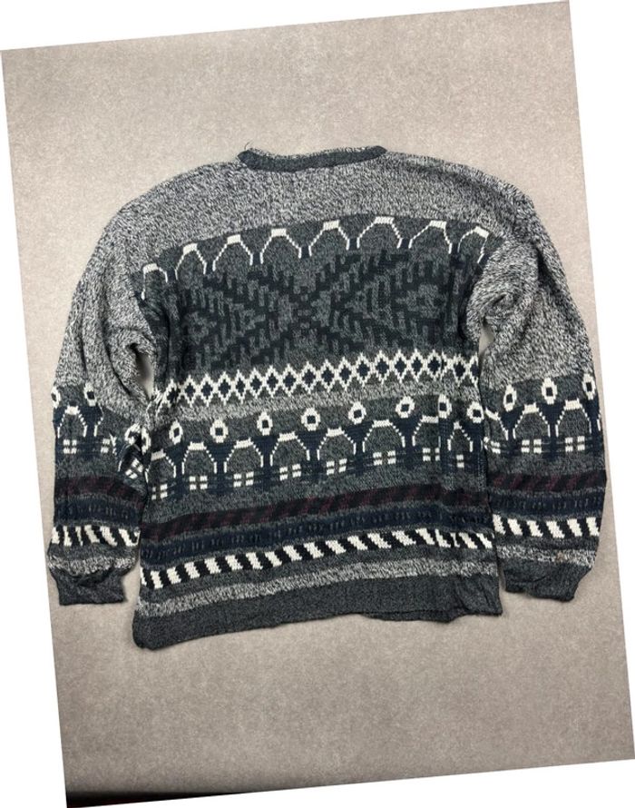 Pull vintage coogi style à motif gris et noir Noël - photo numéro 2