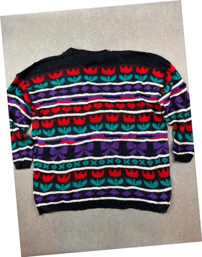Pull vintage coogi style à motif rouge violet Noël - photo numéro 3