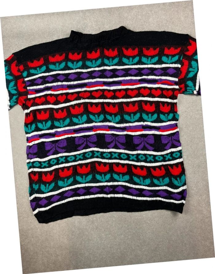 Pull vintage coogi style à motif rouge violet Noël - photo numéro 1