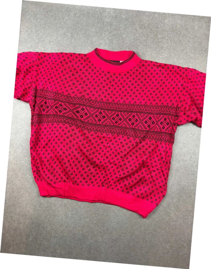 Pull vintage coogi style à motif rouge/rose - photo numéro 6