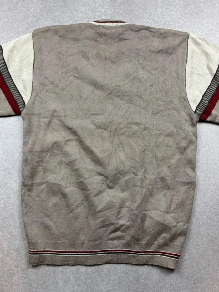 Pull sweat vintage à motif col V gris marron - photo numéro 6