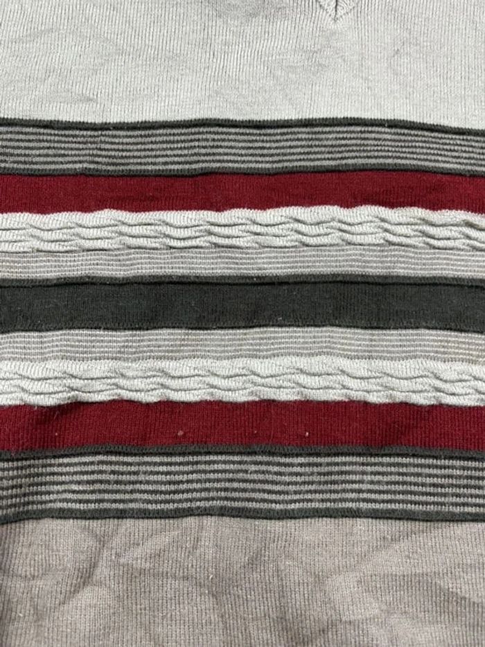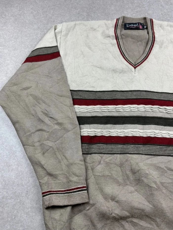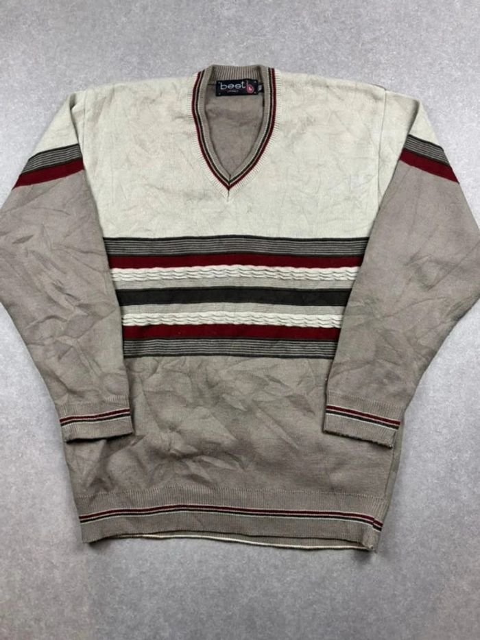 Pull sweat vintage à motif col V gris marron - photo numéro 1
