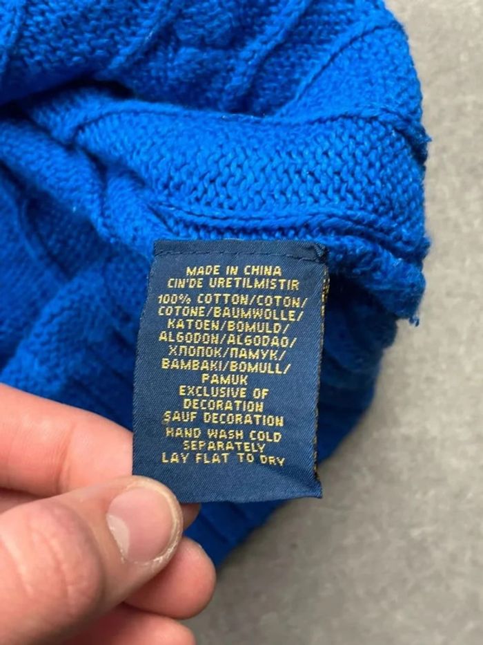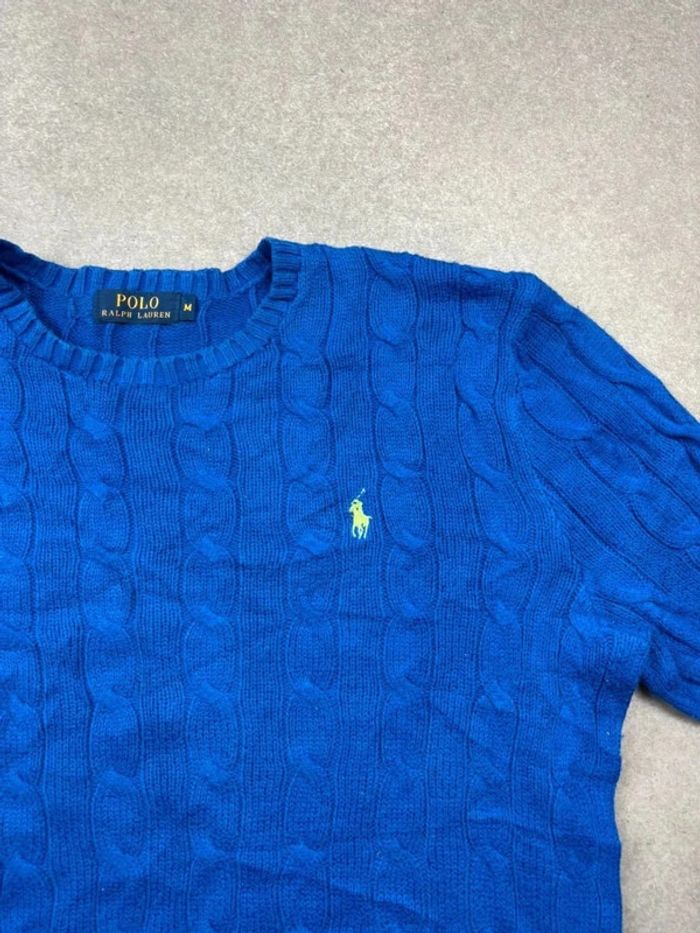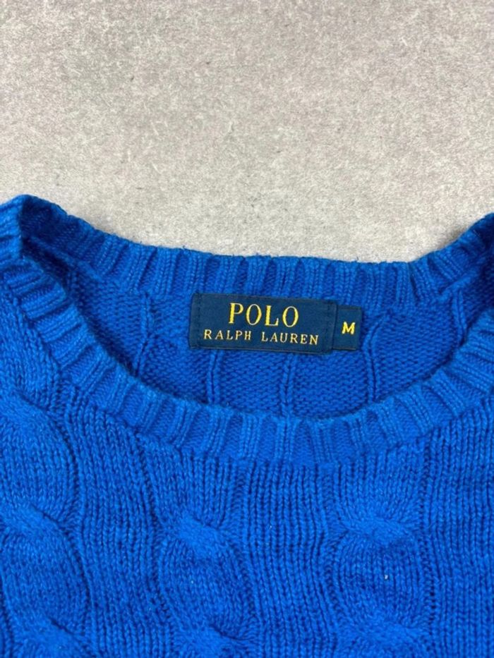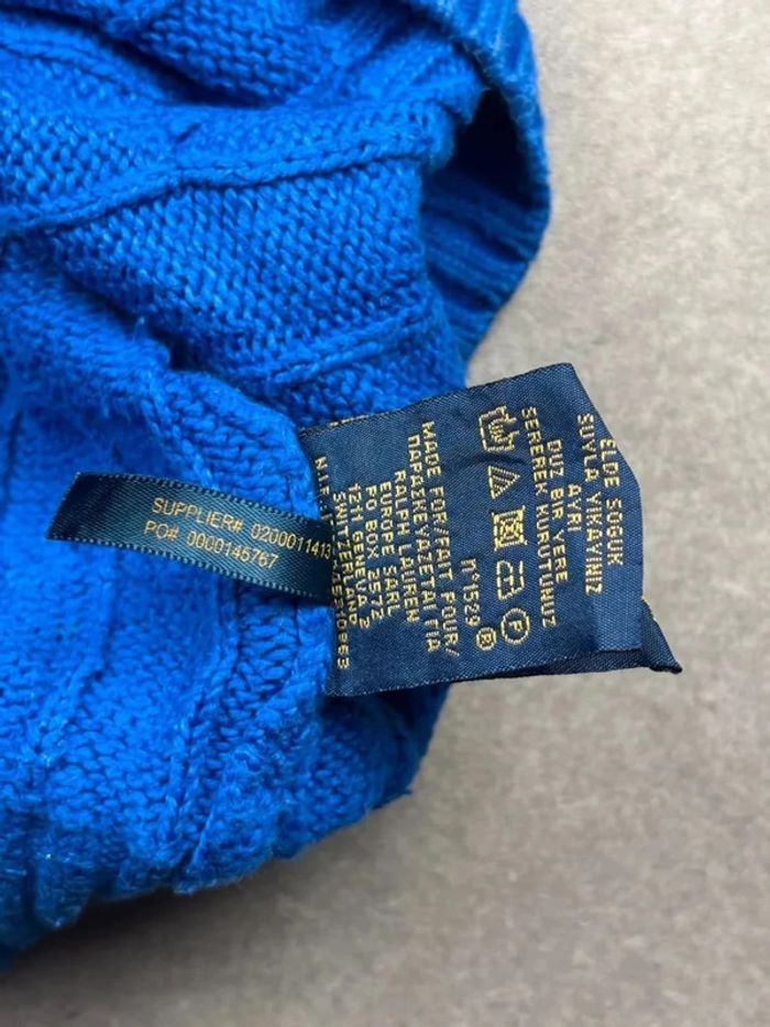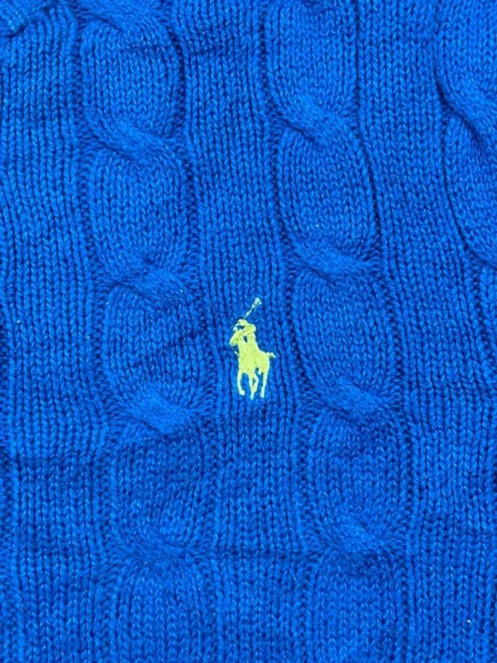 Pull d’hiver torsadé en maille Ralph Lauren bleu col rond taille M - photo numéro 11