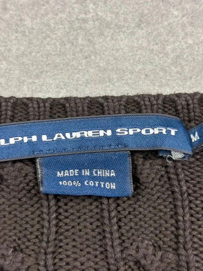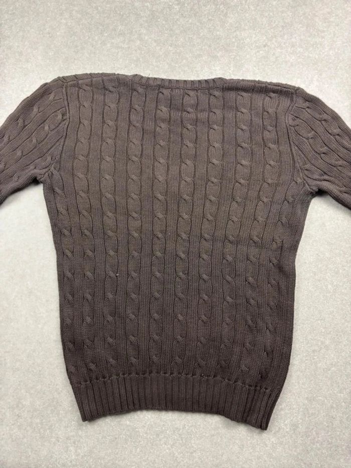 Pull torsadé en maille Ralph Lauren marron logo col V - photo numéro 9