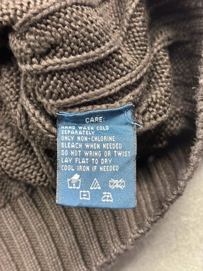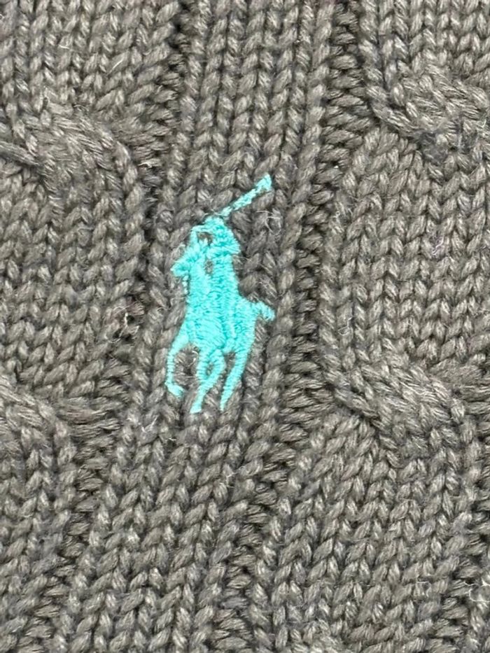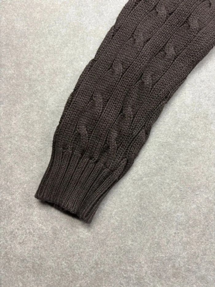 Pull torsadé en maille Ralph Lauren marron logo col V - photo numéro 10
