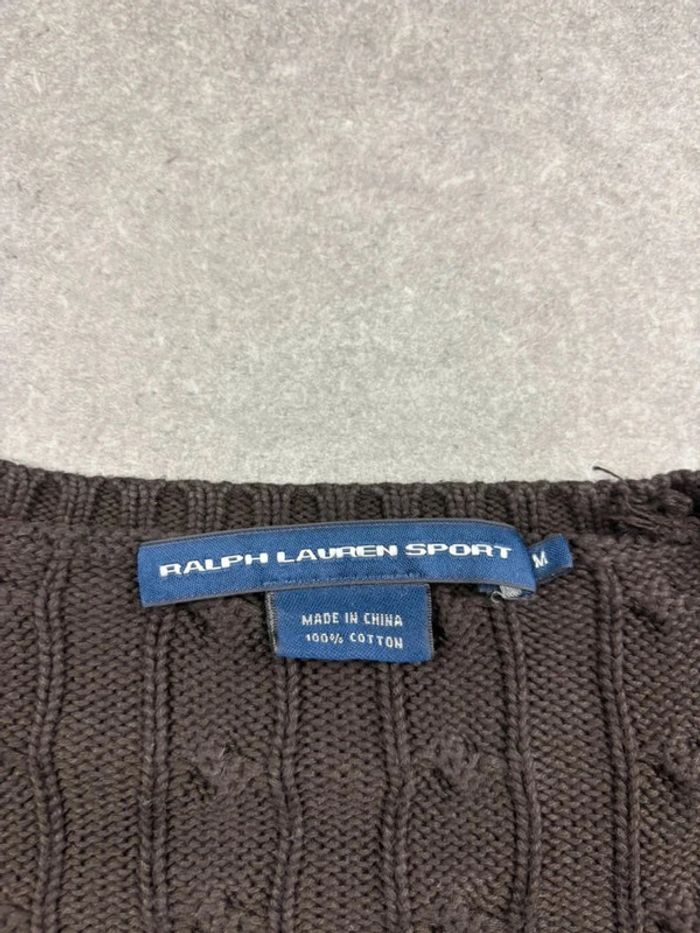Pull torsadé en maille Ralph Lauren marron logo col V - photo numéro 11