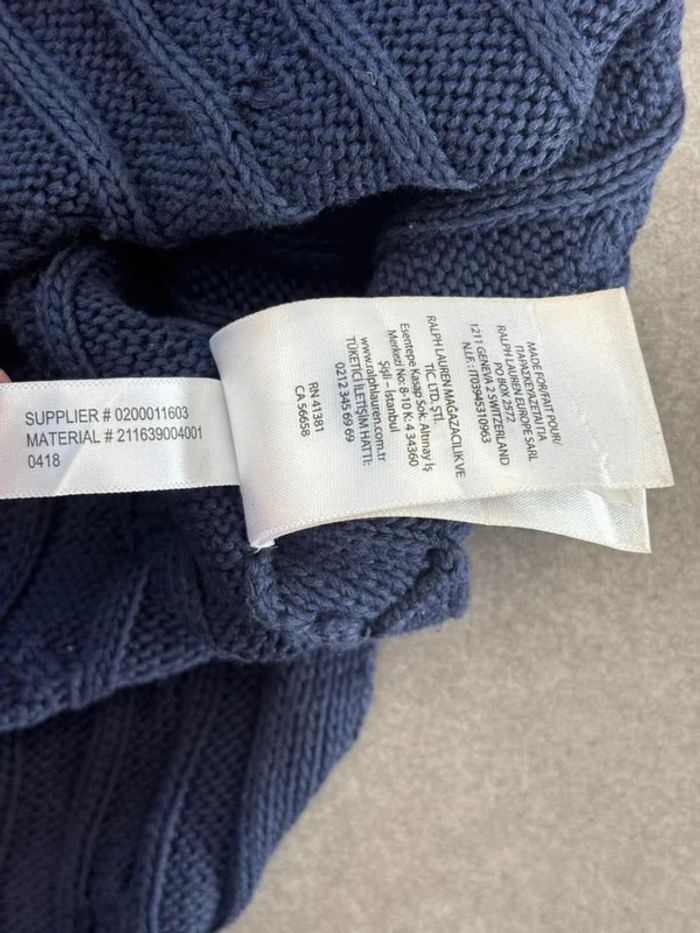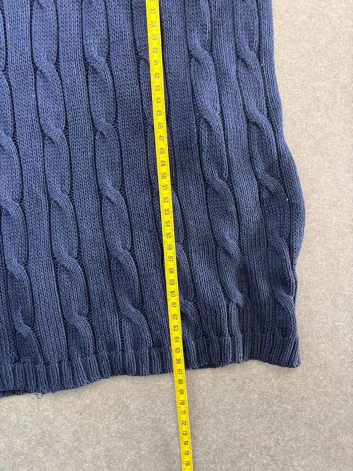 Pull d’hiver torsadé en maille Ralph Lauren bleu marine logo rouge col V taille M femme - photo numéro 11