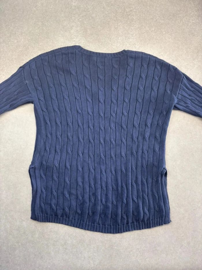 Pull d’hiver torsadé en maille Ralph Lauren bleu marine logo rouge col V taille M femme - photo numéro 8