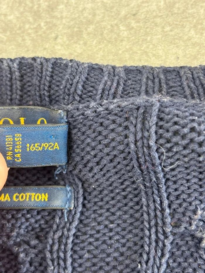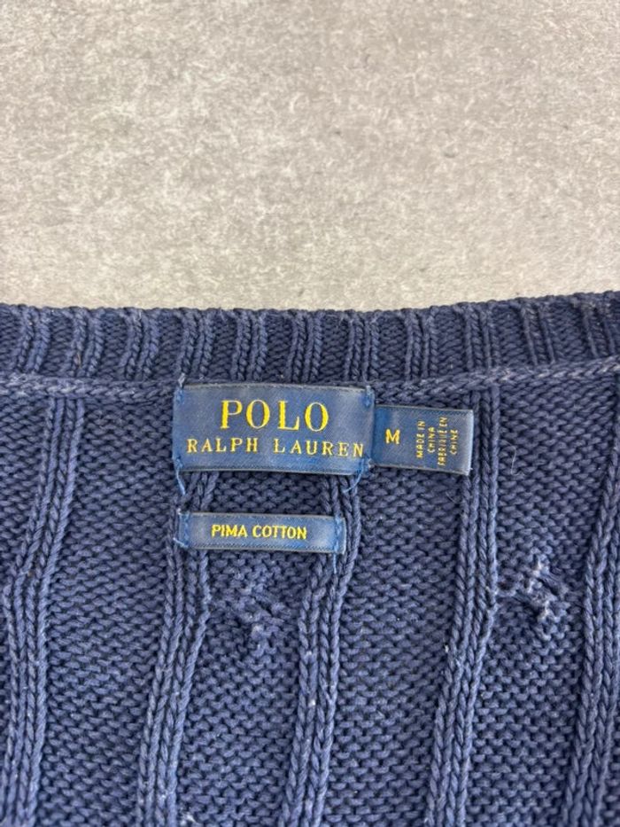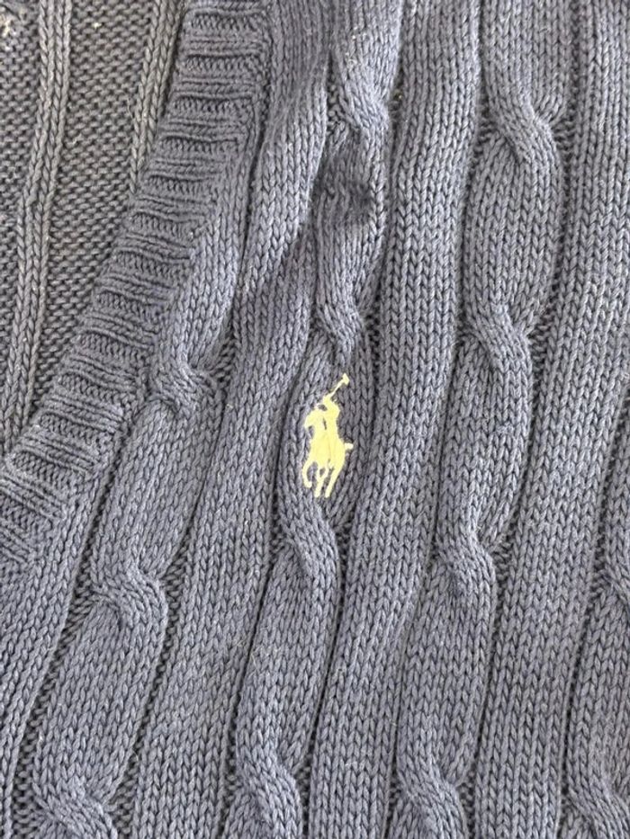 Pull d’hiver torsadé en maille Ralph Lauren bleu marine logo rouge col V taille M femme - photo numéro 10