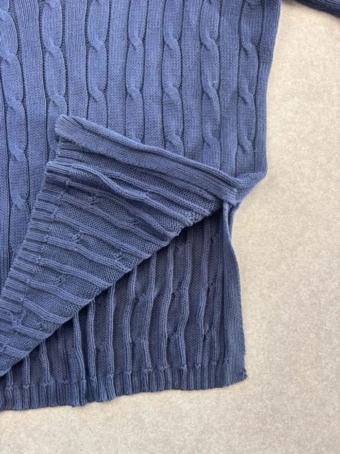 Pull d’hiver torsadé en maille Ralph Lauren bleu marine logo rouge col V taille M femme - photo numéro 13
