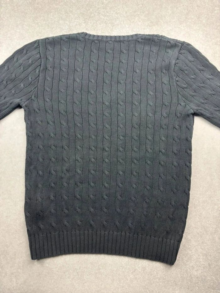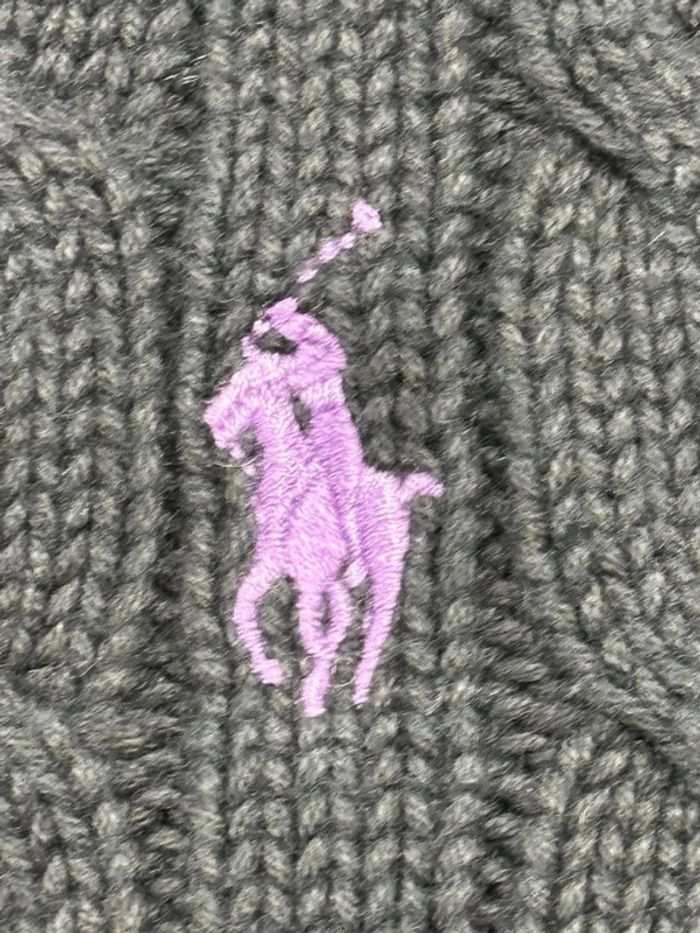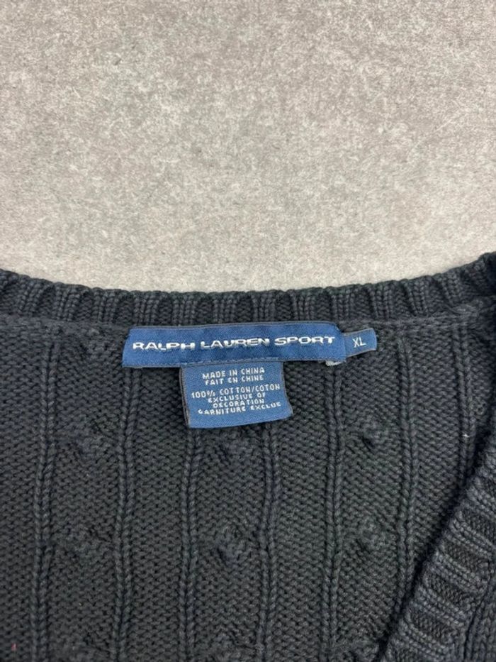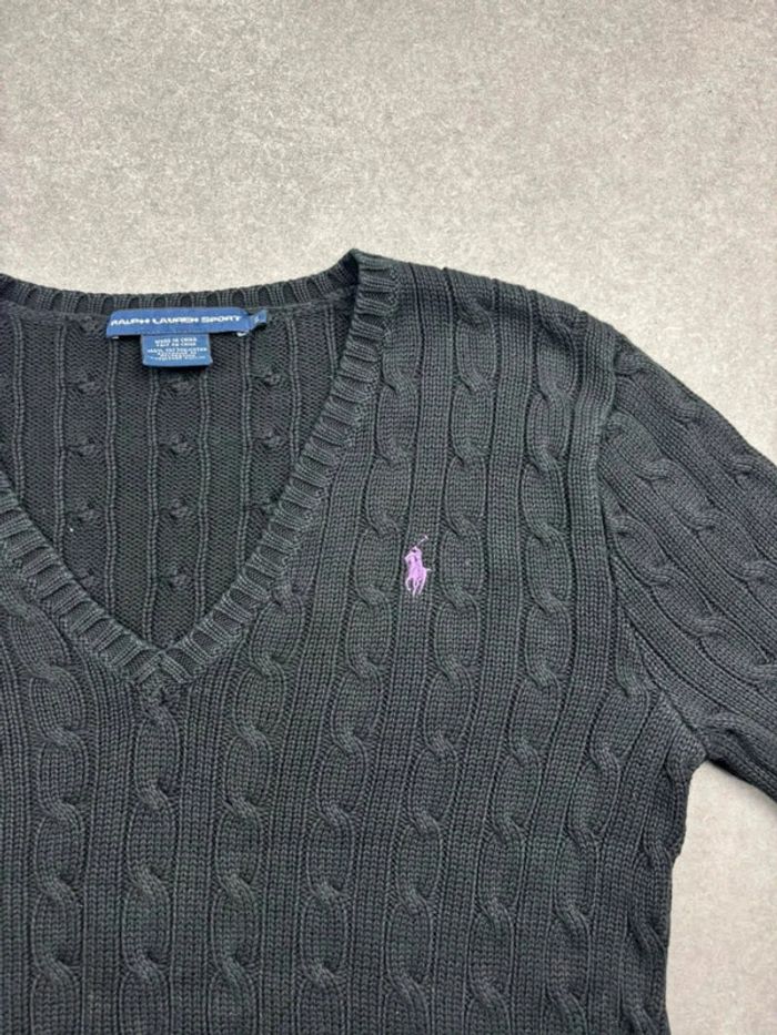Pull torsadé en maille Ralph Lauren noir logo violet col V - photo numéro 9