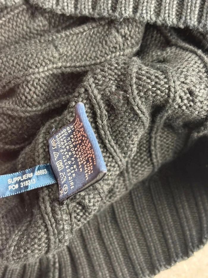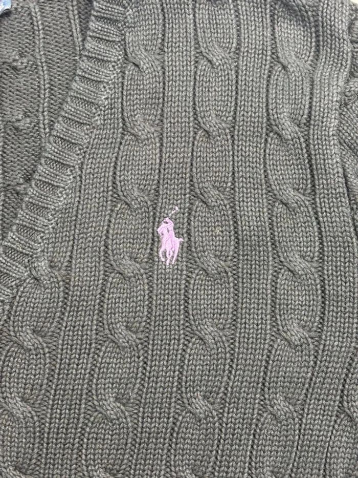 Pull torsadé en maille Ralph Lauren noir logo violet col V - photo numéro 13
